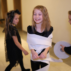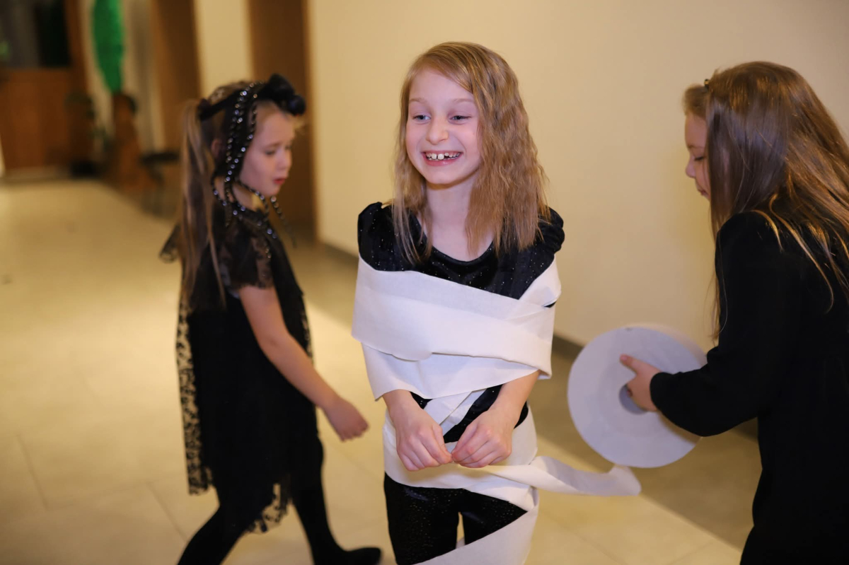 Andrzejkowe popołudnie w naszym Centrum przebiegło w atmosferze wróżb i zabaw. Było wesoło i intrygująco. Niezwykle trudne magiczne zadania przygotowały trzy dobre wróżki Basia, Beata i Ilona. Dzieci karmiły Frankensteina i duszka makaronem, słuchały andrzejkowych historii, tańczyły z krzesłami, robiły mumie z papieru toaletowego na czas, wróżyły z gwiazd, z balonów i ze szklanej kuli. Słowem było straaaaszzznie śmiesznie!