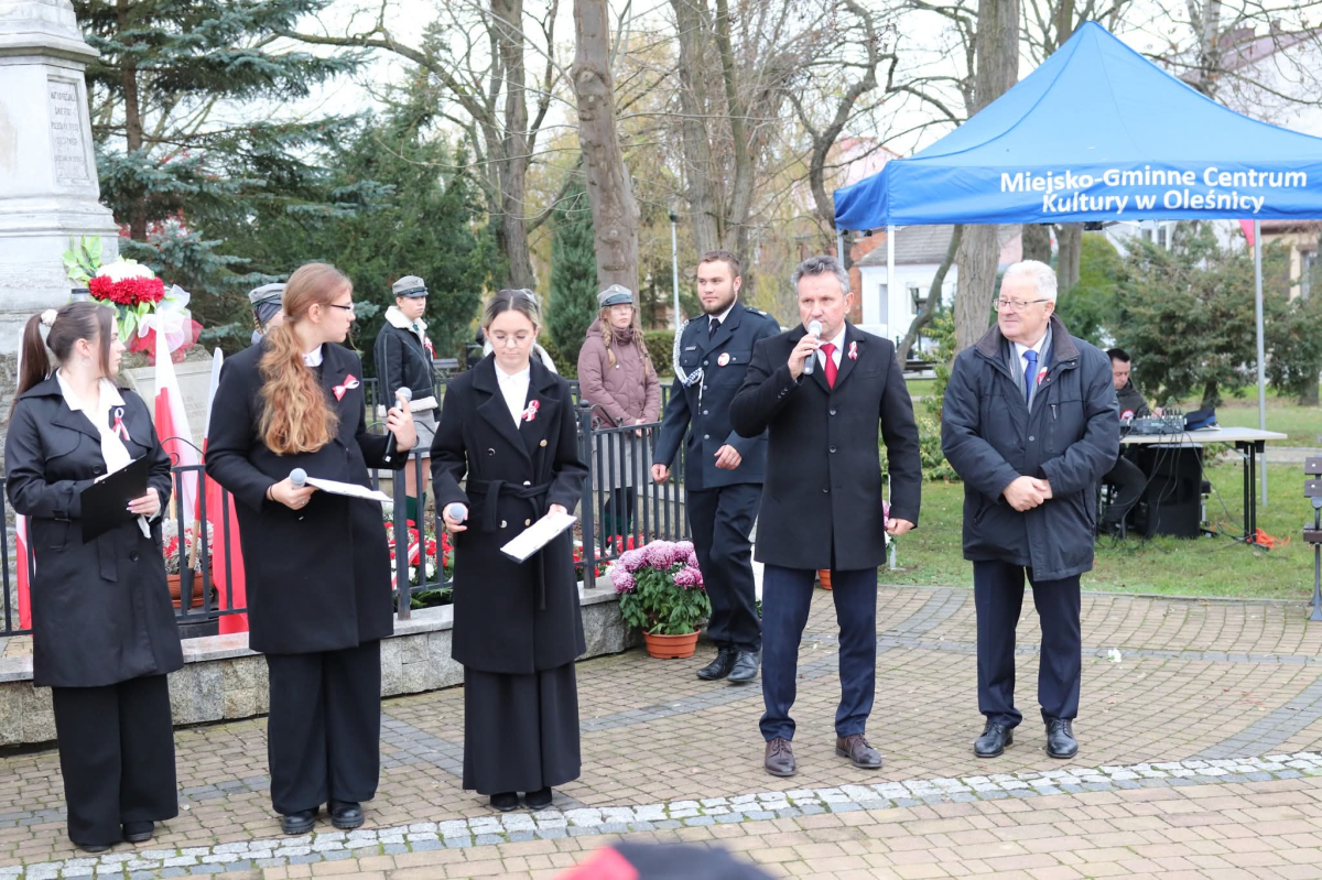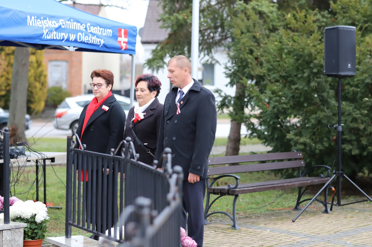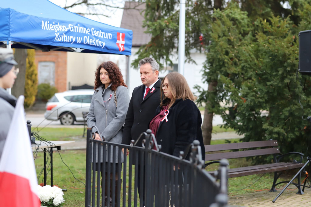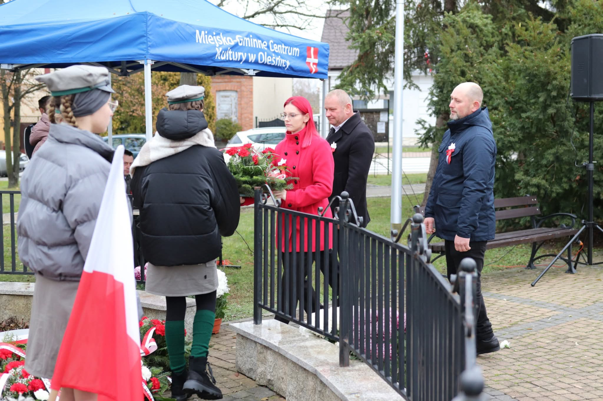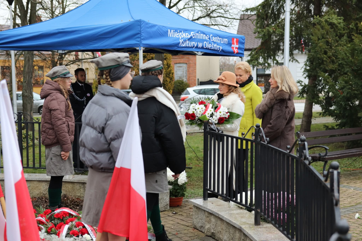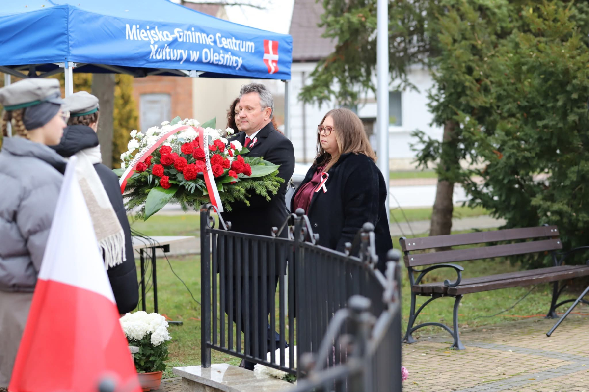 Delegacje składające kwiaty: poseł na Sejm Rzeczypospolitej Polski dr Czesław Siekierski, Rada Miejska Oleśnicy, Burmistrz Miasta i Gminy Oleśnica, Sołectwo Oleśnica, Sołectwo Wojnów, Miejsko – Gminny Zarząd Ochotniczych Straży Pożarnych z terenu gminy Oleśnica, przedstawiciele Polskiego Stronnictwa Ludowego, Publiczna Szkoła Podstawowa im. S. Żeromskiego w Oleśnicy, Przedszkole Gminne im. św. Jana Pawła II w Oleśnicy, Gminna Biblioteka Publiczna w Oleśnicy, Miejsko – Gminne Centrum Kultury w Oleśnicy, Gminny Ośrodek Pomocy Społecznej, Stowarzyszenie "Wspólnota Oleśnicy", Koło Gospodyń Wiejskich w Oleśnicy, Koło Gospodyń Wiejskich „My Kępianie”, Koło Gospodyń Wiejskich Wojnów, Stowarzyszenie „Wojnów łączy”.