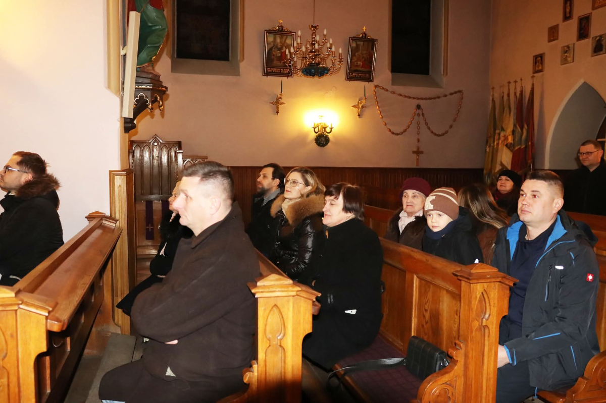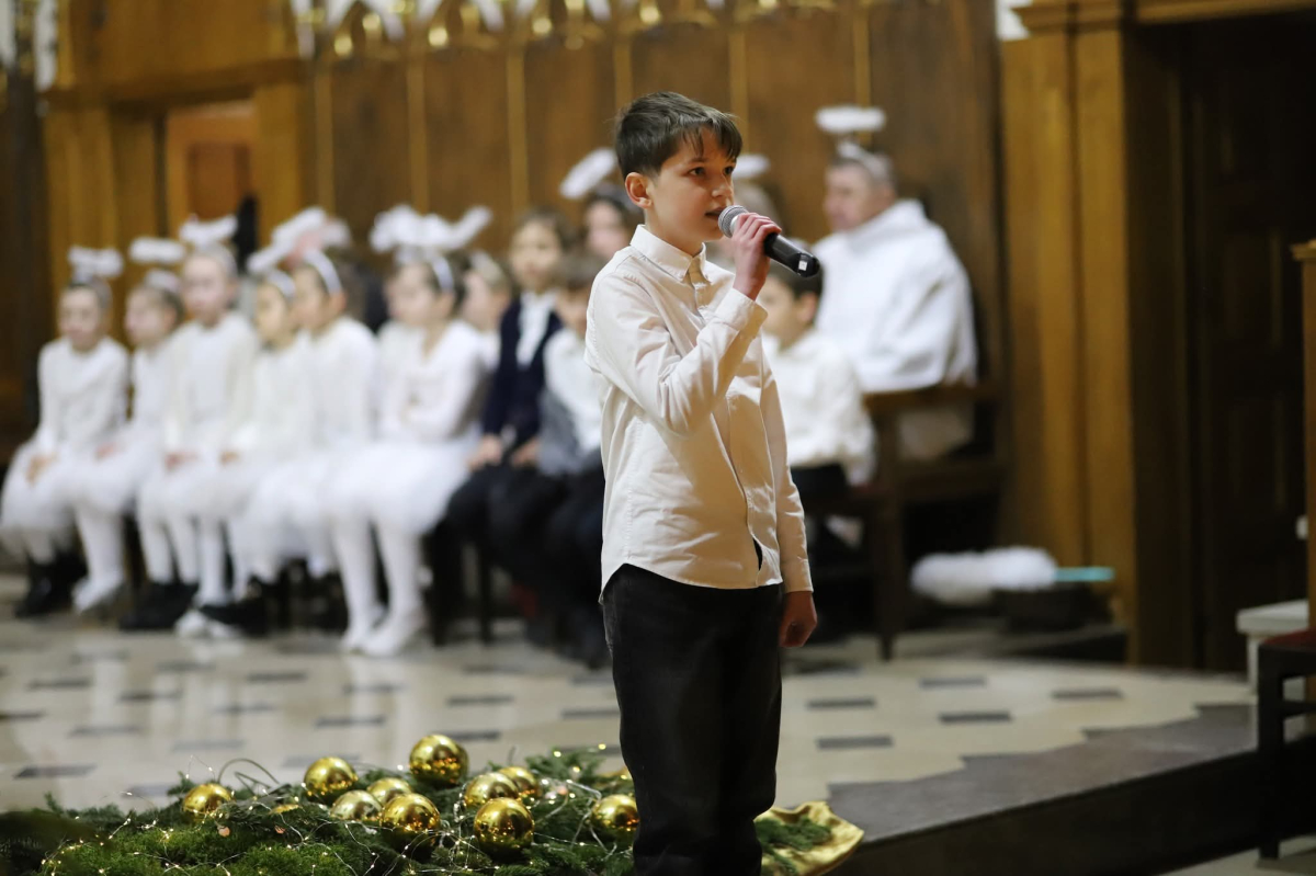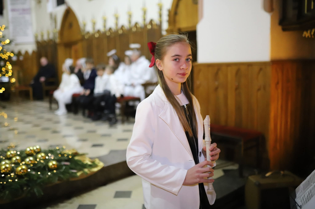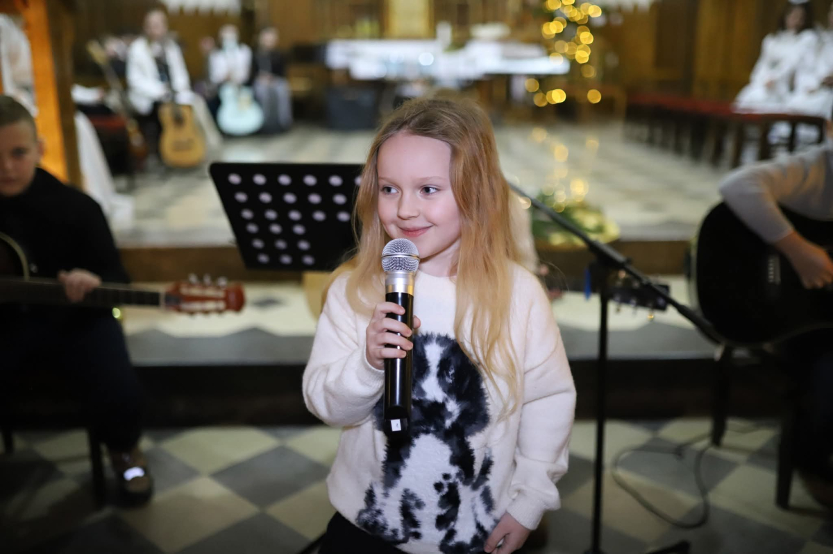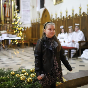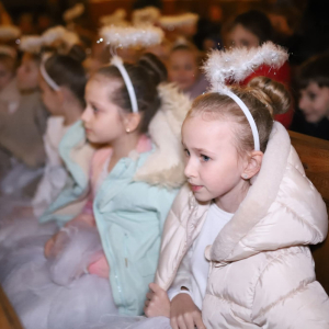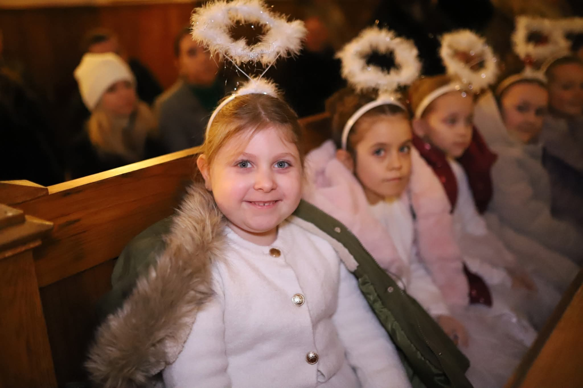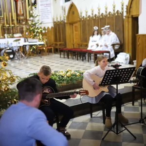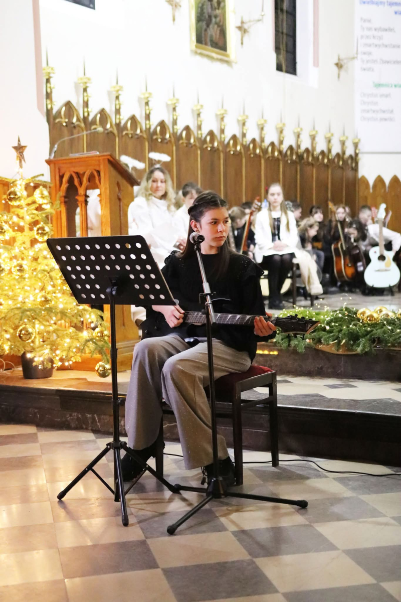 Panie Jezu, po raz czwarty przybyliśmy powitać Cię na świecie i śpiewać Twoją chwałę w kościele pw. Wniebowzięcia Najświętszej Marii Panny. Nieco spóźnieni i z lekką zadyszką (nawiązujemy do liryku ks. Kazimierza Wójtowicza), ale z przepełnionym radością sercem. Nie obyło się jednak bez komplikacji… Chodzi mianowicie o wielkie zamieszanie w niebie i na ziemi. Kiedy anielice szykowały wigilię, męska część nieba nie dopilnowała swoich obowiązków. Mała uboga dziewczynka z zapałkami marzła na mrozie. Znikąd nie było pomocy. Ludzie mijali ją obojętni. Co robić? Co robić? Martwiły się cherubiny. Jest remedium na ten kłopot! Tylko kolędy rozgrzeją ludzkie serca i skłonią ziemian do pomocy. Takie będzie rozwiązanie niebiańskiego kłopotu. Ale anioły przeliczyły swoje siły i potrzebowały natychmiastowej pomocy. To zadanie w sam raz dla nas! W sukurs przyszły i dzieci, i młodzież. Co nastąpiło potem? Próżno by opowiadać. Na własne oczy trzeba by to zobaczyć oraz usłyszeć. Dźwięczne śpiewne głosy, brzmienie gitar, mocne uderzenie zespołu muzycznego i anielskie pląsy rozgrzewały nieczułe ludzkie serca. Z pomocą pośpieszyli również dorośli: nasze Seniorki, zespół „Pacanowianie”, zespół „Singers QR” z Rytwian oraz rodzima „Oleśniczanka”. Było radośnie i dla ucha bardzo bardzo przyjemnie…