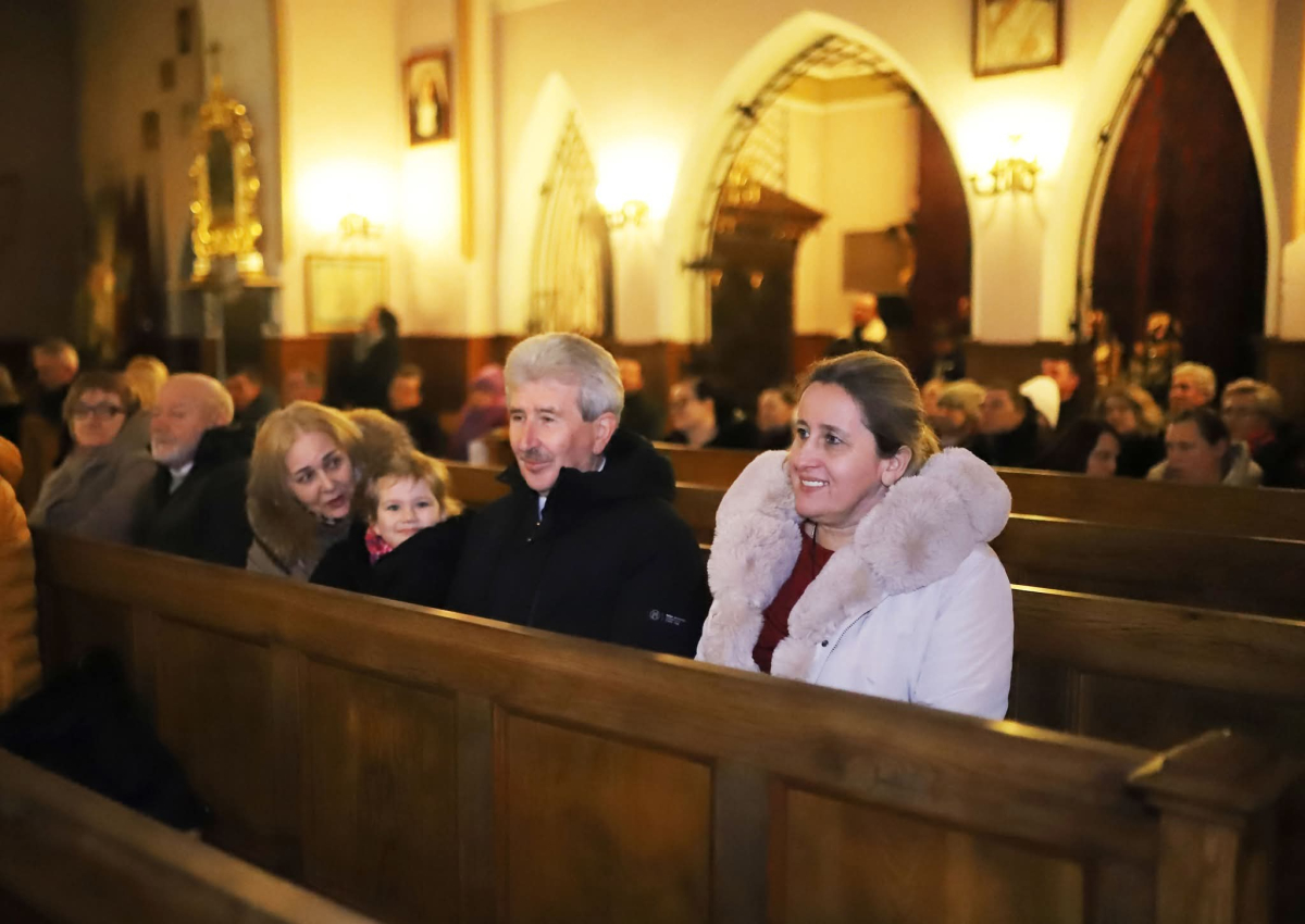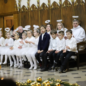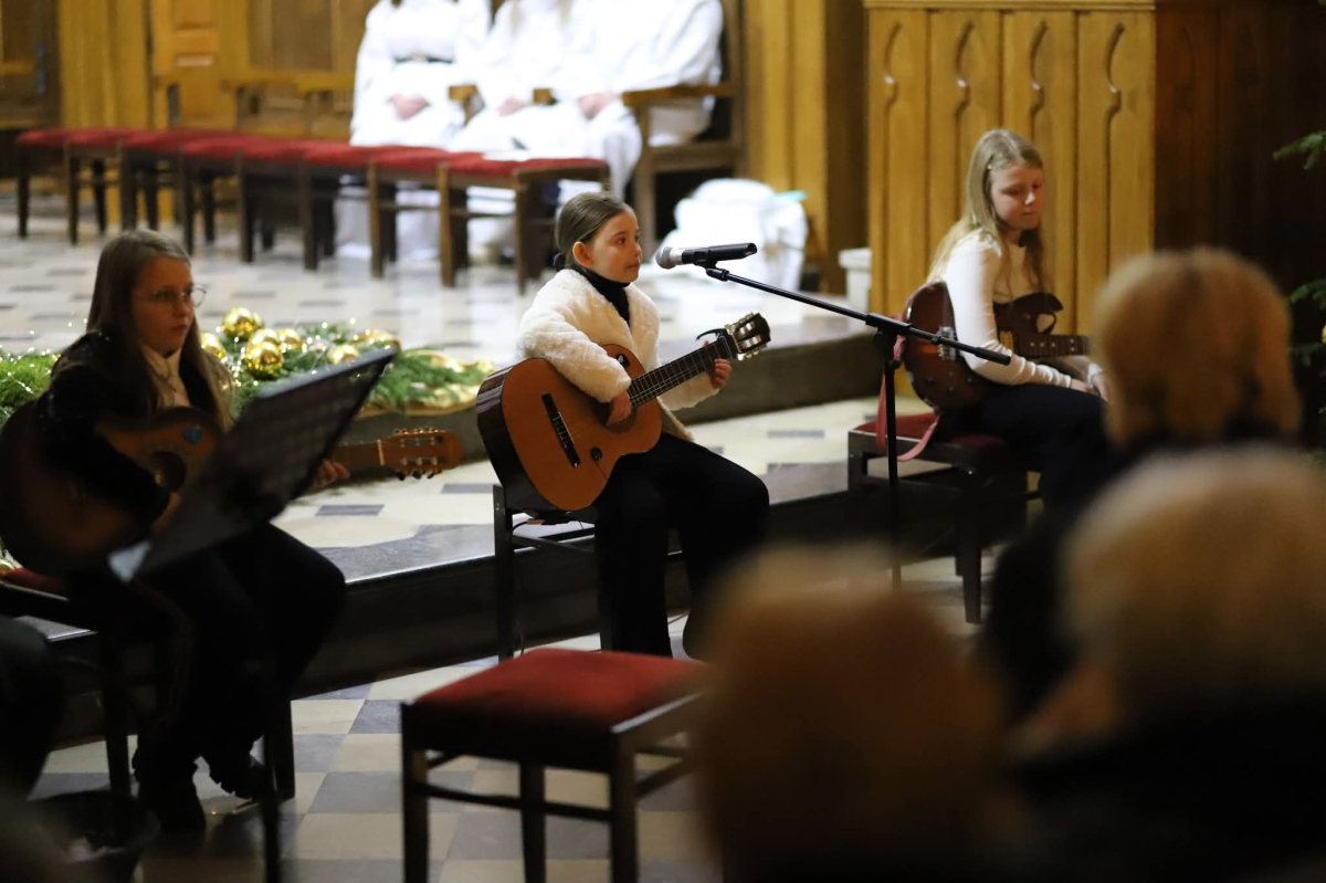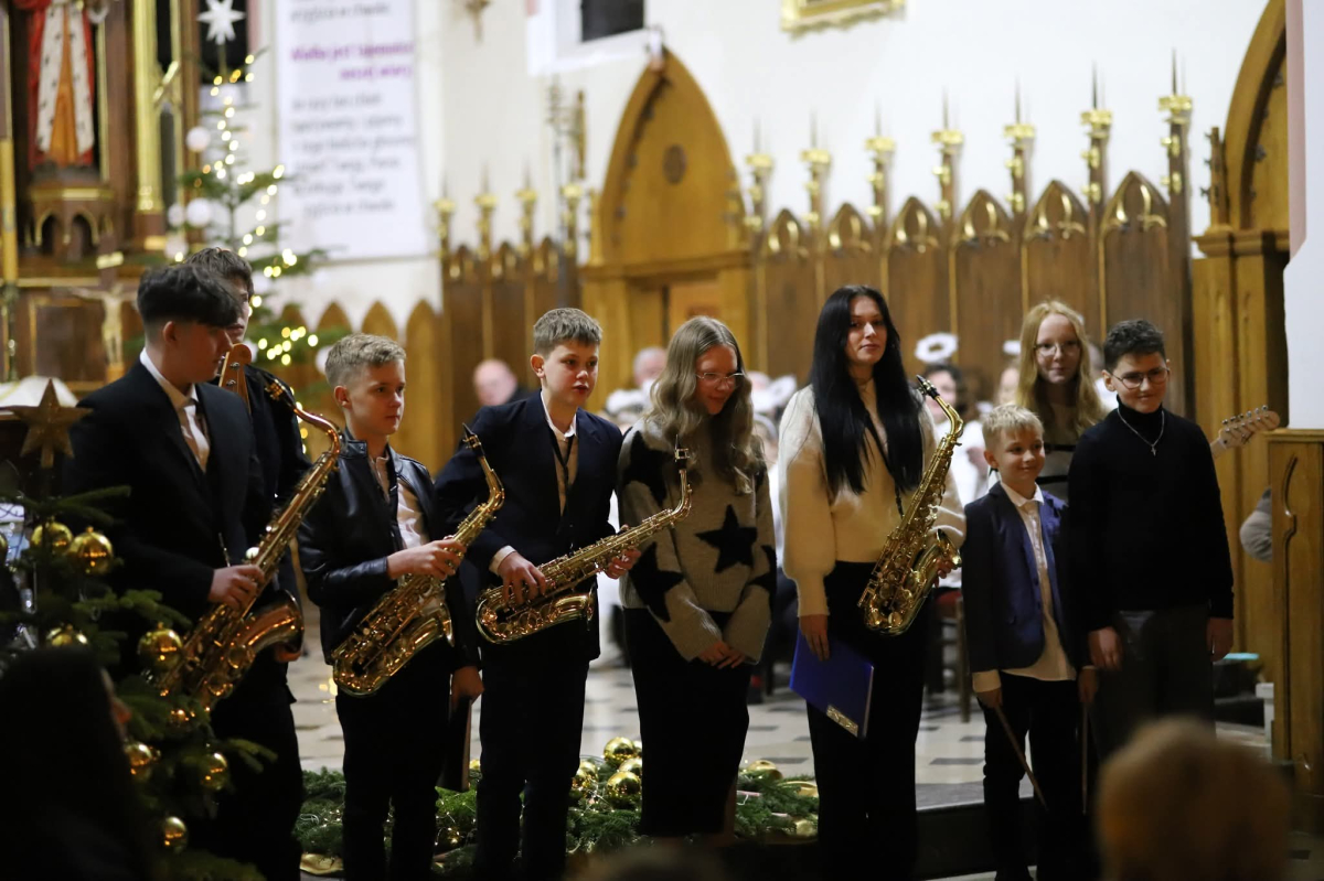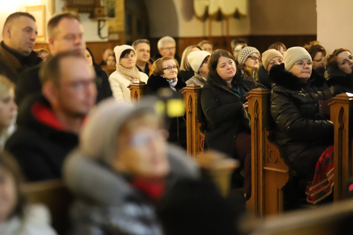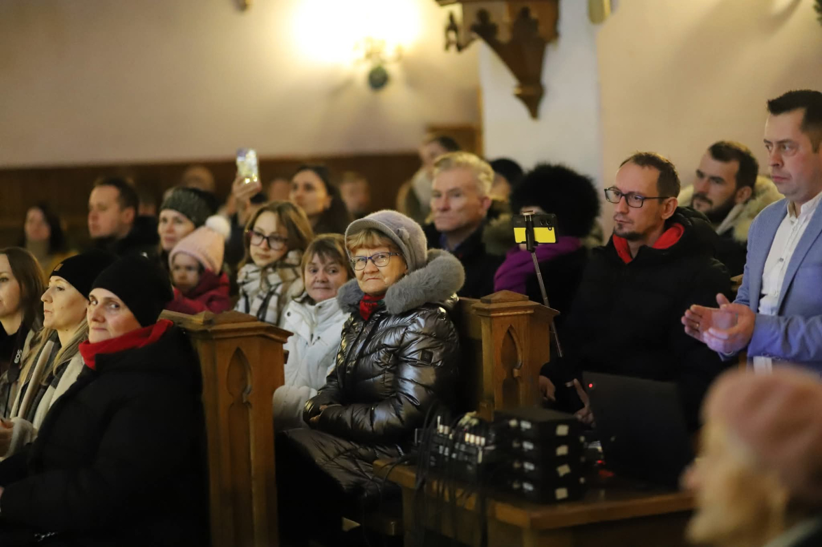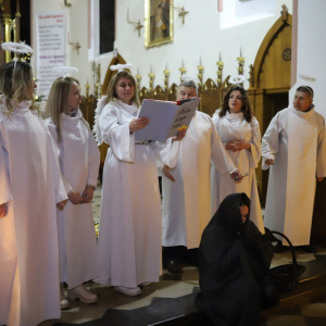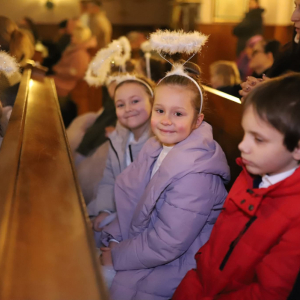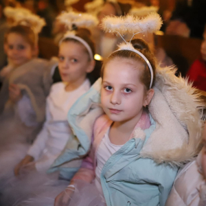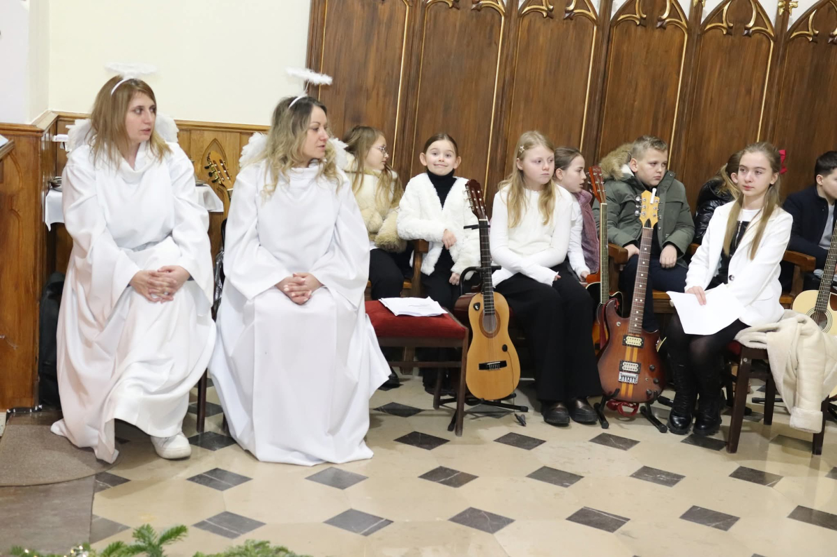 Panie Jezu, po raz czwarty przybyliśmy powitać Cię na świecie i śpiewać Twoją chwałę w kościele pw. Wniebowzięcia Najświętszej Marii Panny. Nieco spóźnieni i z lekką zadyszką (nawiązujemy do liryku ks. Kazimierza Wójtowicza), ale z przepełnionym radością sercem. Nie obyło się jednak bez komplikacji… Chodzi mianowicie o wielkie zamieszanie w niebie i na ziemi. Kiedy anielice szykowały wigilię, męska część nieba nie dopilnowała swoich obowiązków. Mała uboga dziewczynka z zapałkami marzła na mrozie. Znikąd nie było pomocy. Ludzie mijali ją obojętni. Co robić? Co robić? Martwiły się cherubiny. Jest remedium na ten kłopot! Tylko kolędy rozgrzeją ludzkie serca i skłonią ziemian do pomocy. Takie będzie rozwiązanie niebiańskiego kłopotu. Ale anioły przeliczyły swoje siły i potrzebowały natychmiastowej pomocy. To zadanie w sam raz dla nas! W sukurs przyszły i dzieci, i młodzież. Co nastąpiło potem? Próżno by opowiadać. Na własne oczy trzeba by to zobaczyć oraz usłyszeć. Dźwięczne śpiewne głosy, brzmienie gitar, mocne uderzenie zespołu muzycznego i anielskie pląsy rozgrzewały nieczułe ludzkie serca. Z pomocą pośpieszyli również dorośli: nasze Seniorki, zespół „Pacanowianie”, zespół „Singers QR” z Rytwian oraz rodzima „Oleśniczanka”. Było radośnie i dla ucha bardzo bardzo przyjemnie…