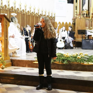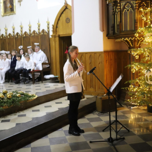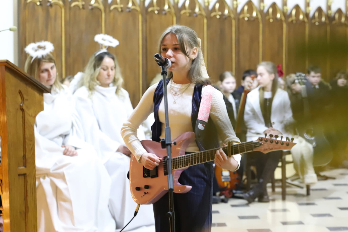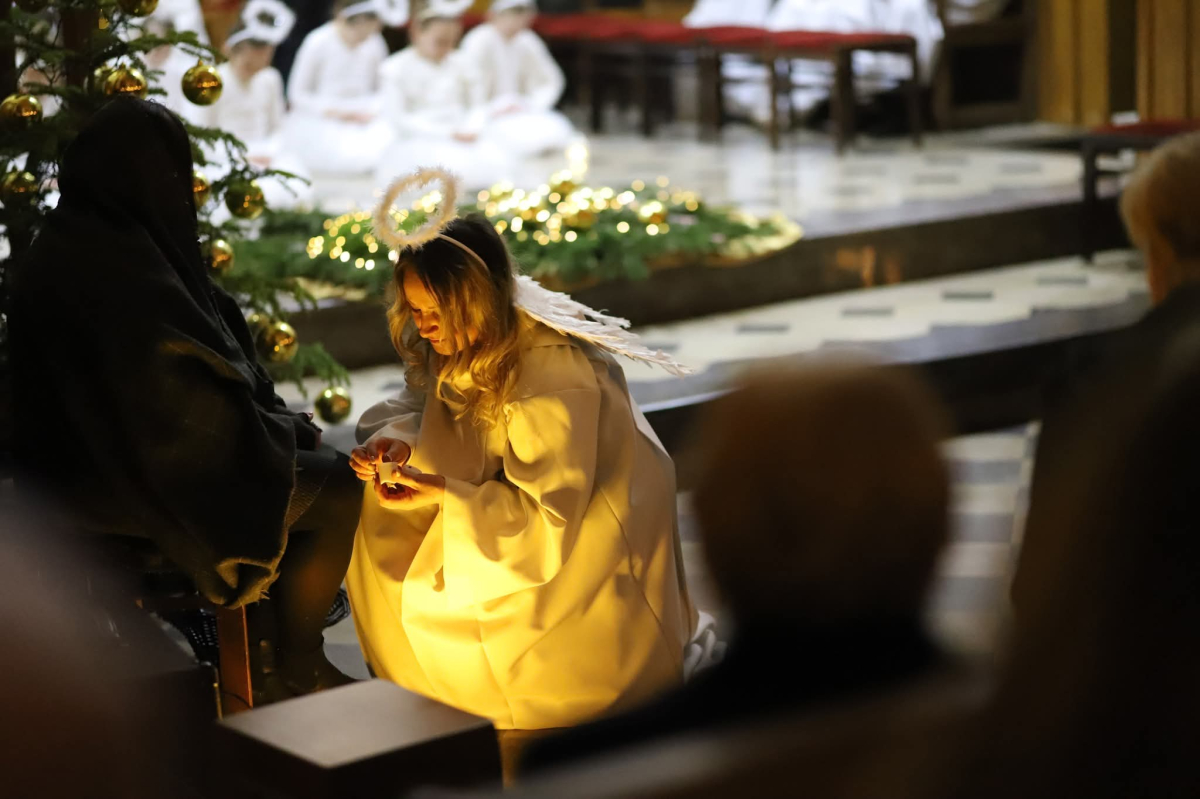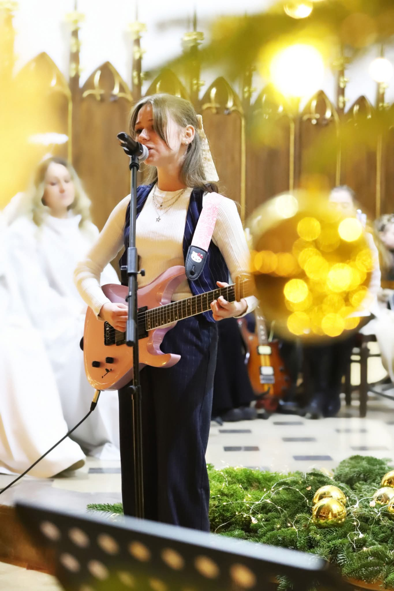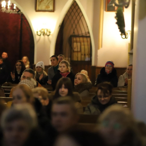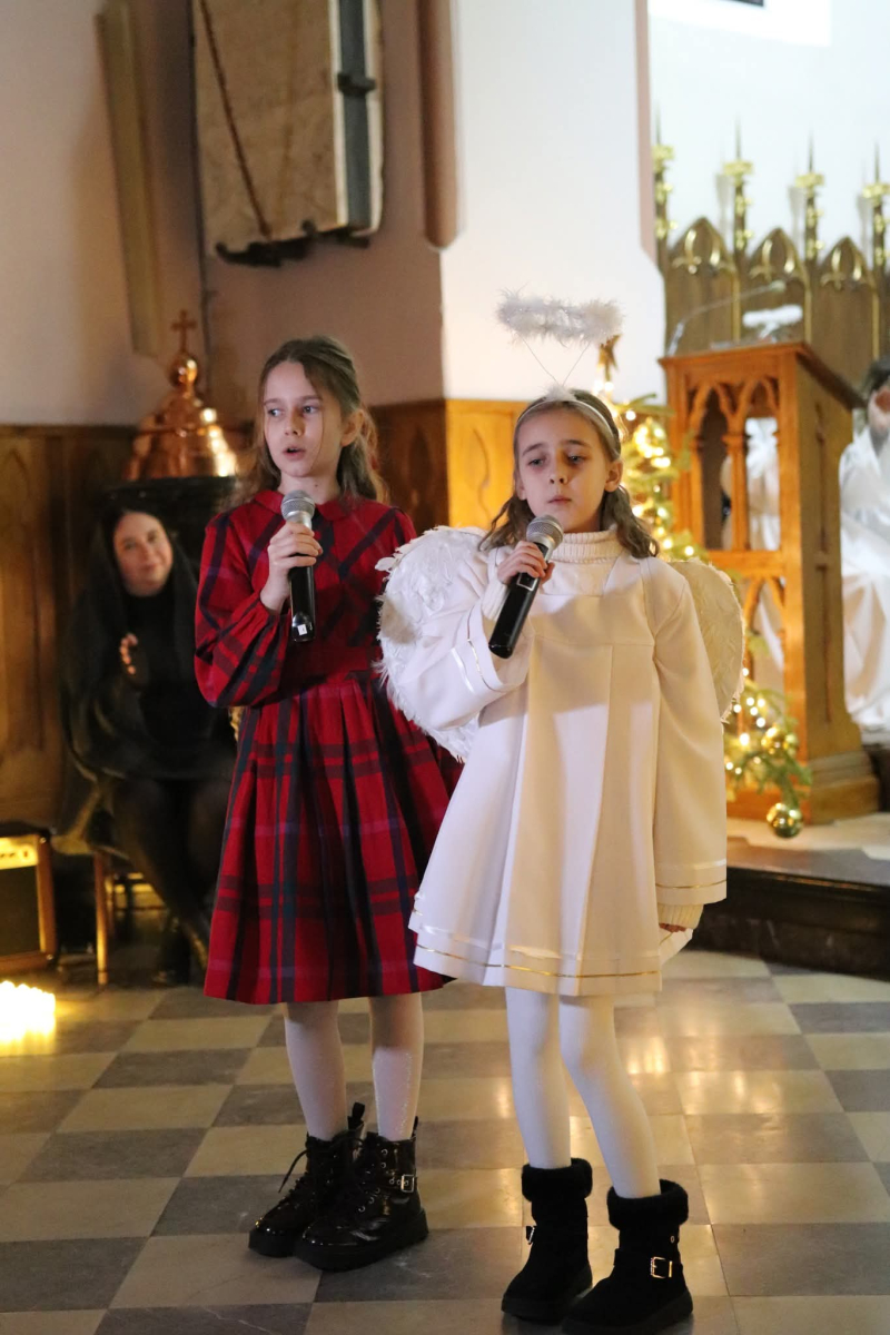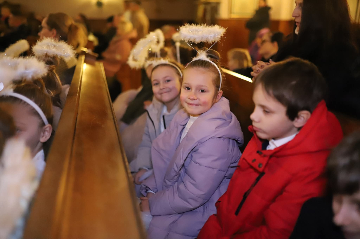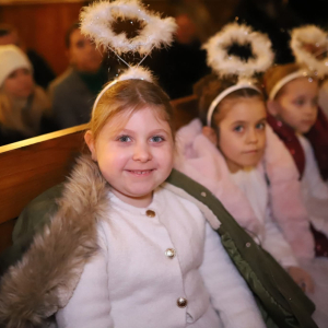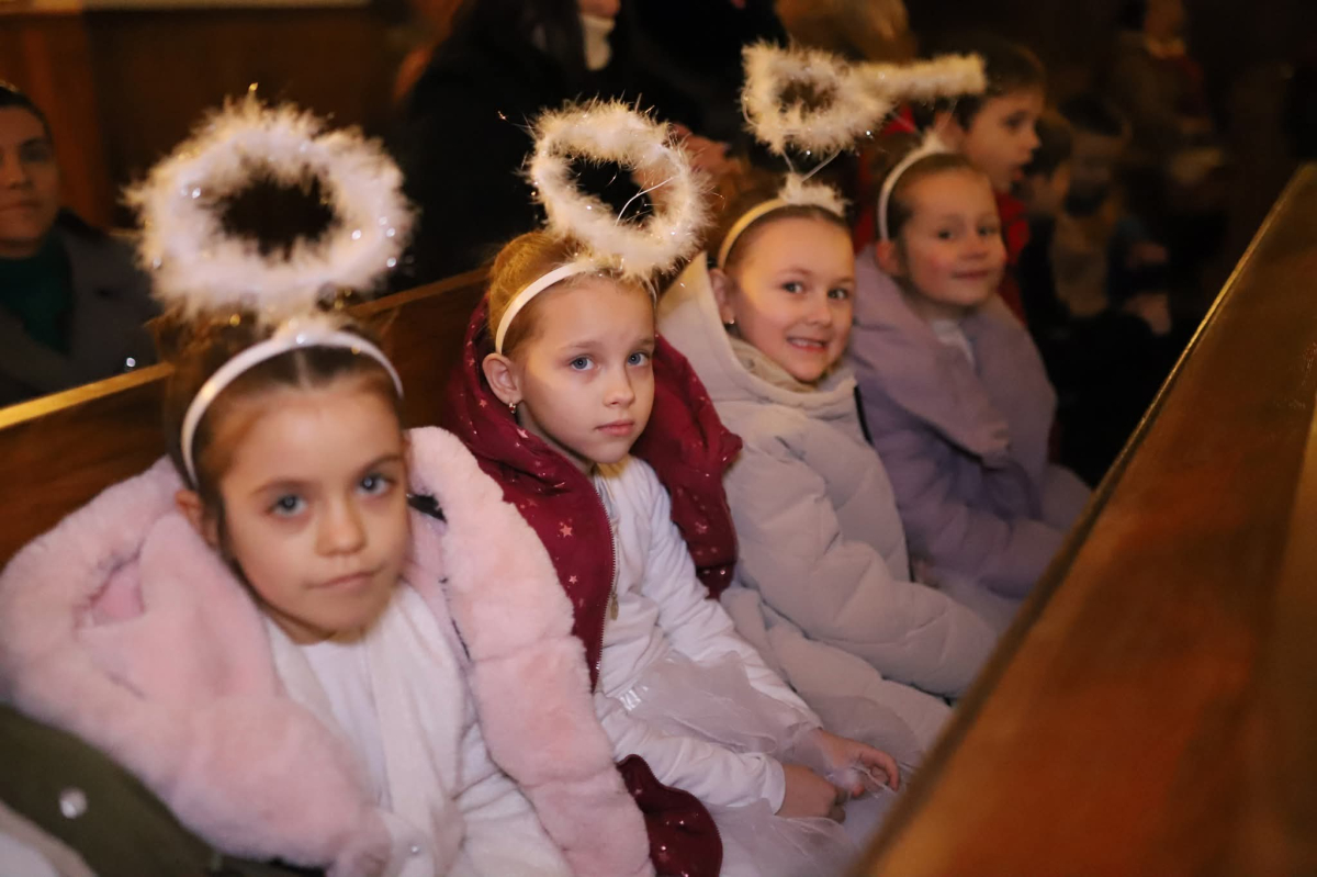 Panie Jezu, po raz czwarty przybyliśmy powitać Cię na świecie i śpiewać Twoją chwałę w kościele pw. Wniebowzięcia Najświętszej Marii Panny. Nieco spóźnieni i z lekką zadyszką (nawiązujemy do liryku ks. Kazimierza Wójtowicza), ale z przepełnionym radością sercem. Nie obyło się jednak bez komplikacji… Chodzi mianowicie o wielkie zamieszanie w niebie i na ziemi. Kiedy anielice szykowały wigilię, męska część nieba nie dopilnowała swoich obowiązków. Mała uboga dziewczynka z zapałkami marzła na mrozie. Znikąd nie było pomocy. Ludzie mijali ją obojętni. Co robić? Co robić? Martwiły się cherubiny. Jest remedium na ten kłopot! Tylko kolędy rozgrzeją ludzkie serca i skłonią ziemian do pomocy. Takie będzie rozwiązanie niebiańskiego kłopotu. Ale anioły przeliczyły swoje siły i potrzebowały natychmiastowej pomocy. To zadanie w sam raz dla nas! W sukurs przyszły i dzieci, i młodzież. Co nastąpiło potem? Próżno by opowiadać. Na własne oczy trzeba by to zobaczyć oraz usłyszeć. Dźwięczne śpiewne głosy, brzmienie gitar, mocne uderzenie zespołu muzycznego i anielskie pląsy rozgrzewały nieczułe ludzkie serca. Z pomocą pośpieszyli również dorośli: nasze Seniorki, zespół „Pacanowianie”, zespół „Singers QR” z Rytwian oraz rodzima „Oleśniczanka”. Było radośnie i dla ucha bardzo bardzo przyjemnie…