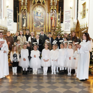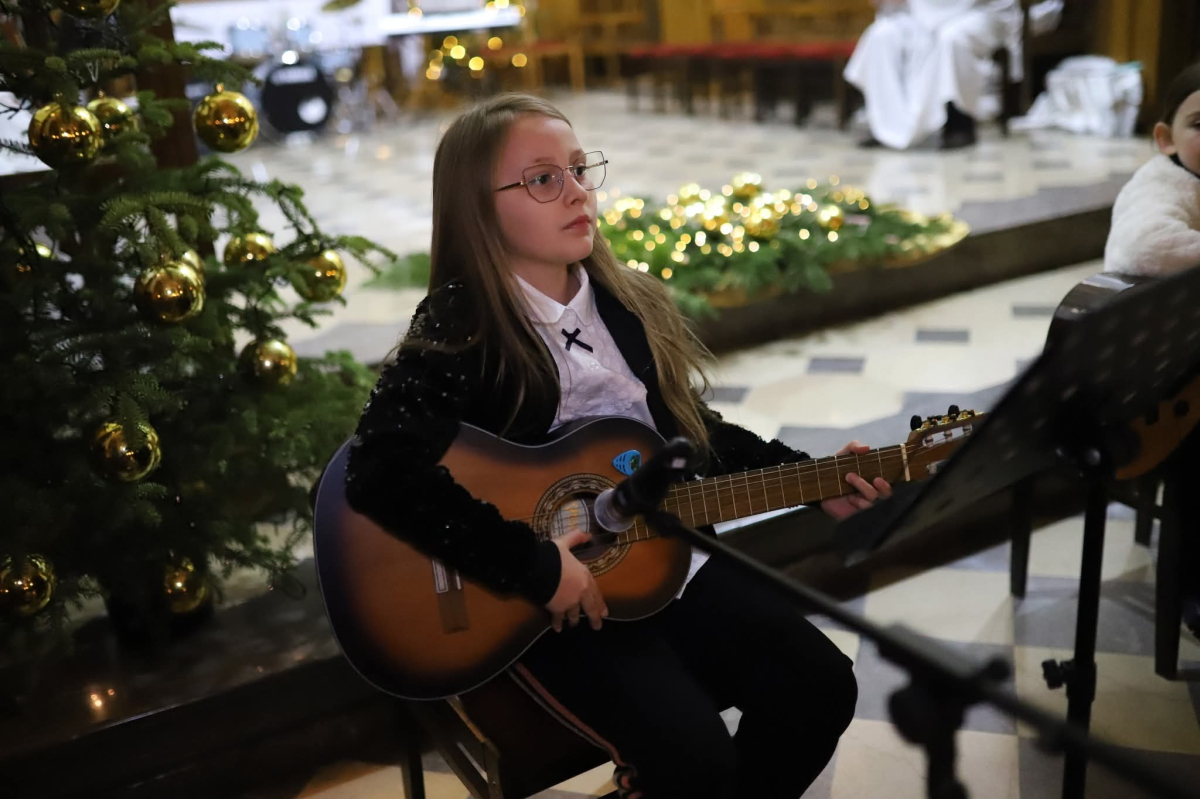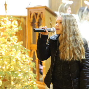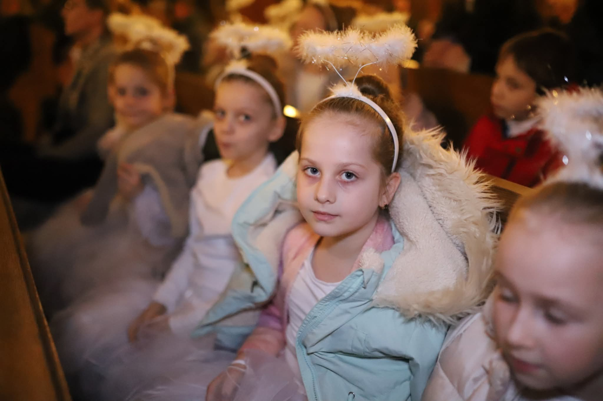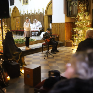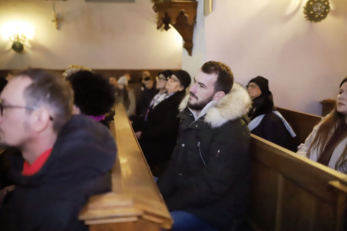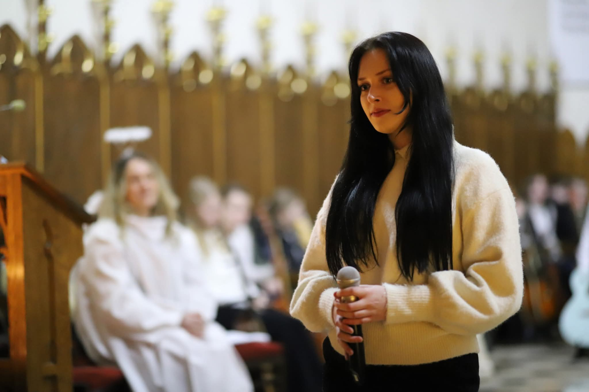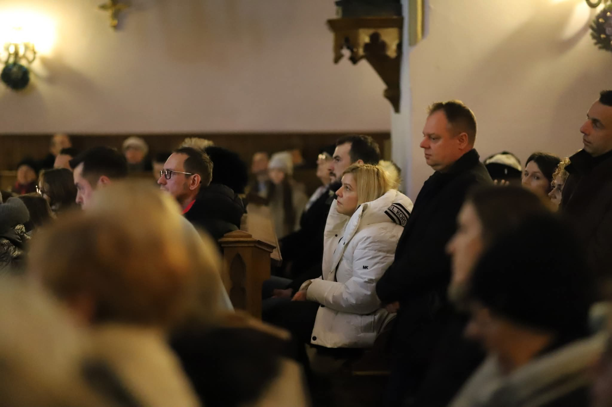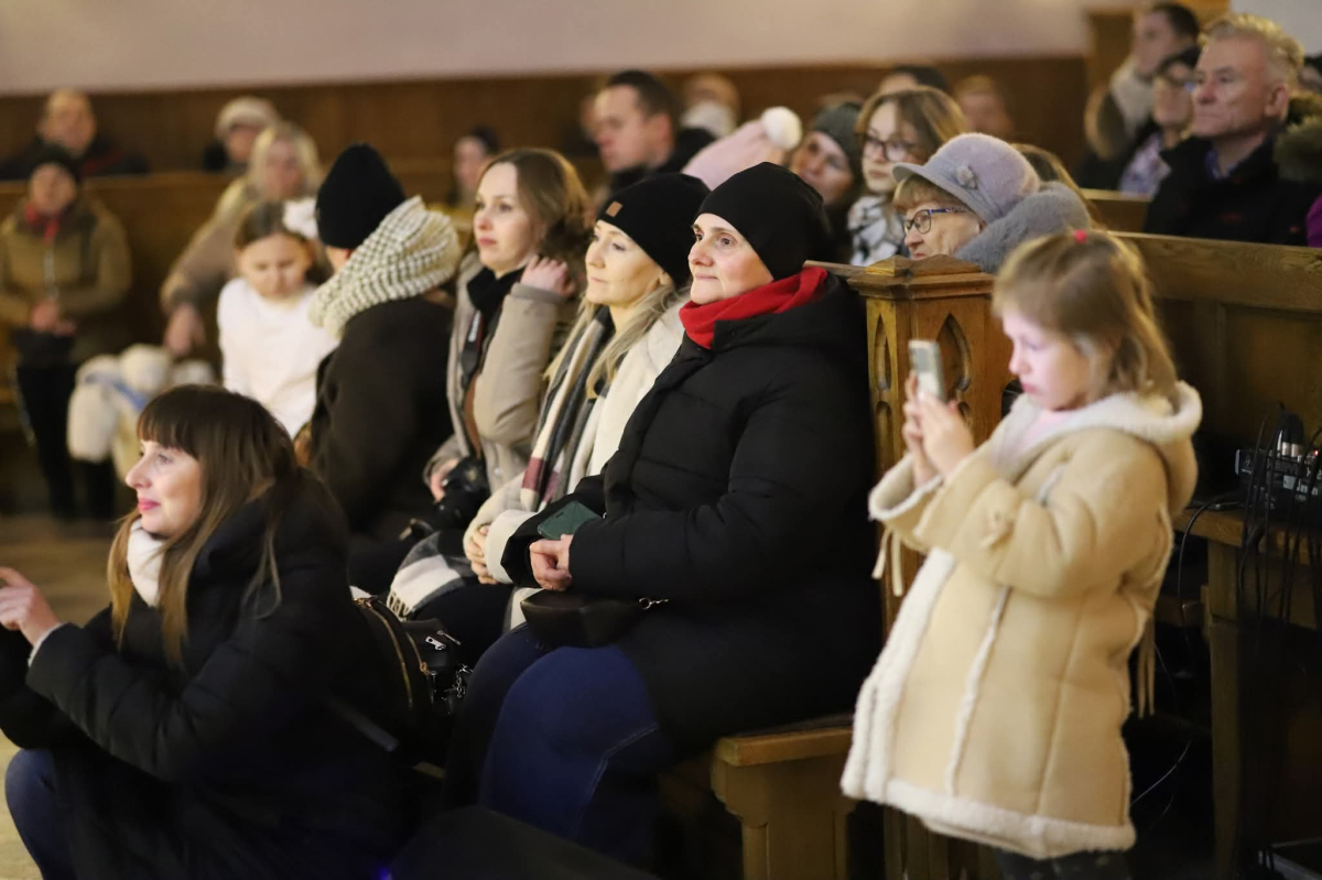 Panie Jezu, po raz czwarty przybyliśmy powitać Cię na świecie i śpiewać Twoją chwałę w kościele pw. Wniebowzięcia Najświętszej Marii Panny. Nieco spóźnieni i z lekką zadyszką (nawiązujemy do liryku ks. Kazimierza Wójtowicza), ale z przepełnionym radością sercem. Nie obyło się jednak bez komplikacji… Chodzi mianowicie o wielkie zamieszanie w niebie i na ziemi. Kiedy anielice szykowały wigilię, męska część nieba nie dopilnowała swoich obowiązków. Mała uboga dziewczynka z zapałkami marzła na mrozie. Znikąd nie było pomocy. Ludzie mijali ją obojętni. Co robić? Co robić? Martwiły się cherubiny. Jest remedium na ten kłopot! Tylko kolędy rozgrzeją ludzkie serca i skłonią ziemian do pomocy. Takie będzie rozwiązanie niebiańskiego kłopotu. Ale anioły przeliczyły swoje siły i potrzebowały natychmiastowej pomocy. To zadanie w sam raz dla nas! W sukurs przyszły i dzieci, i młodzież. Co nastąpiło potem? Próżno by opowiadać. Na własne oczy trzeba by to zobaczyć oraz usłyszeć. Dźwięczne śpiewne głosy, brzmienie gitar, mocne uderzenie zespołu muzycznego i anielskie pląsy rozgrzewały nieczułe ludzkie serca. Z pomocą pośpieszyli również dorośli: nasze Seniorki, zespół „Pacanowianie”, zespół „Singers QR” z Rytwian oraz rodzima „Oleśniczanka”. Było radośnie i dla ucha bardzo bardzo przyjemnie…