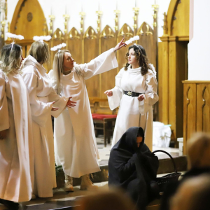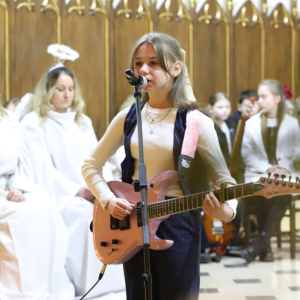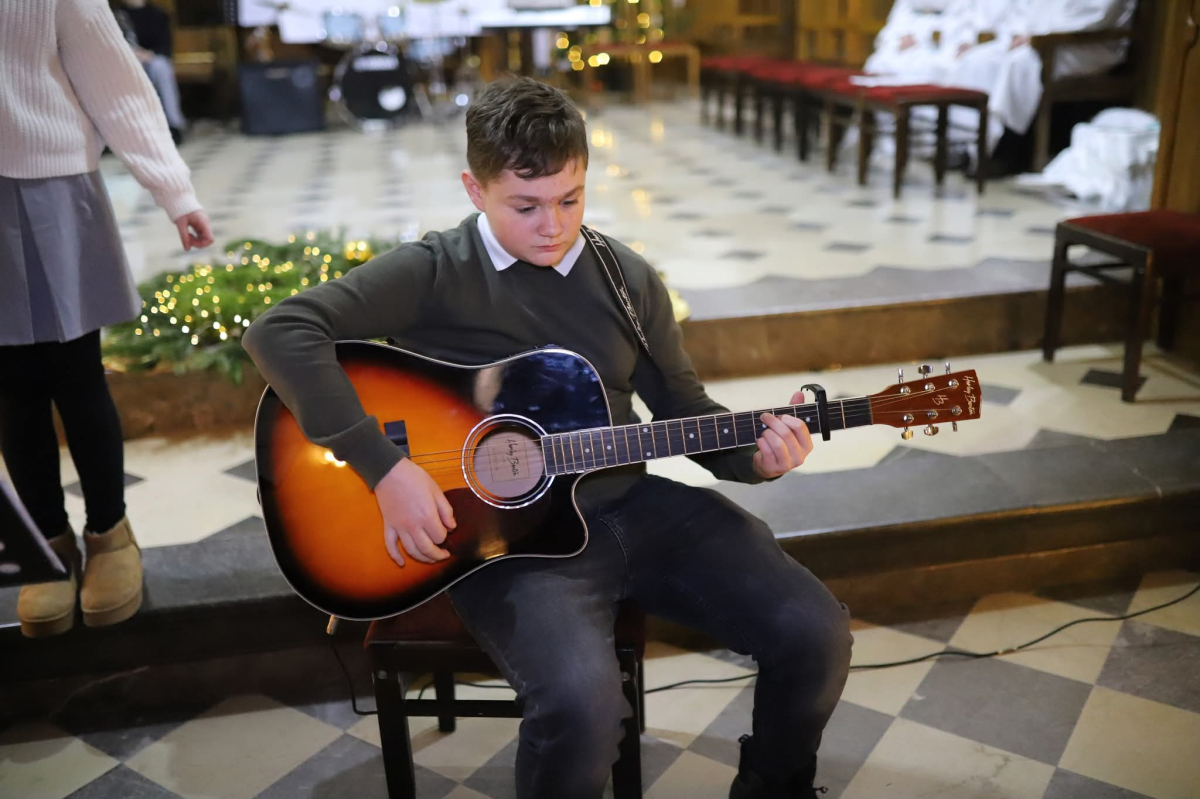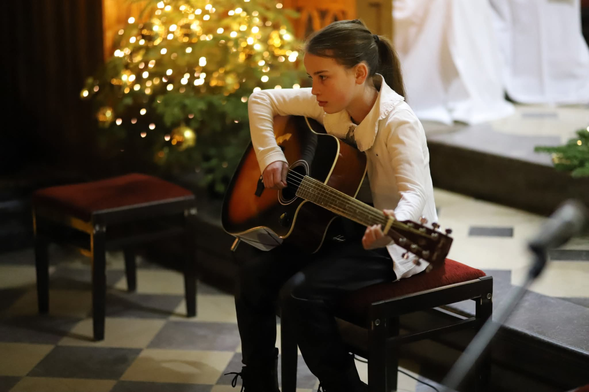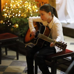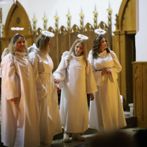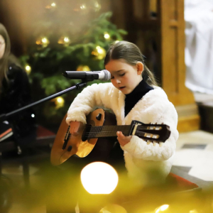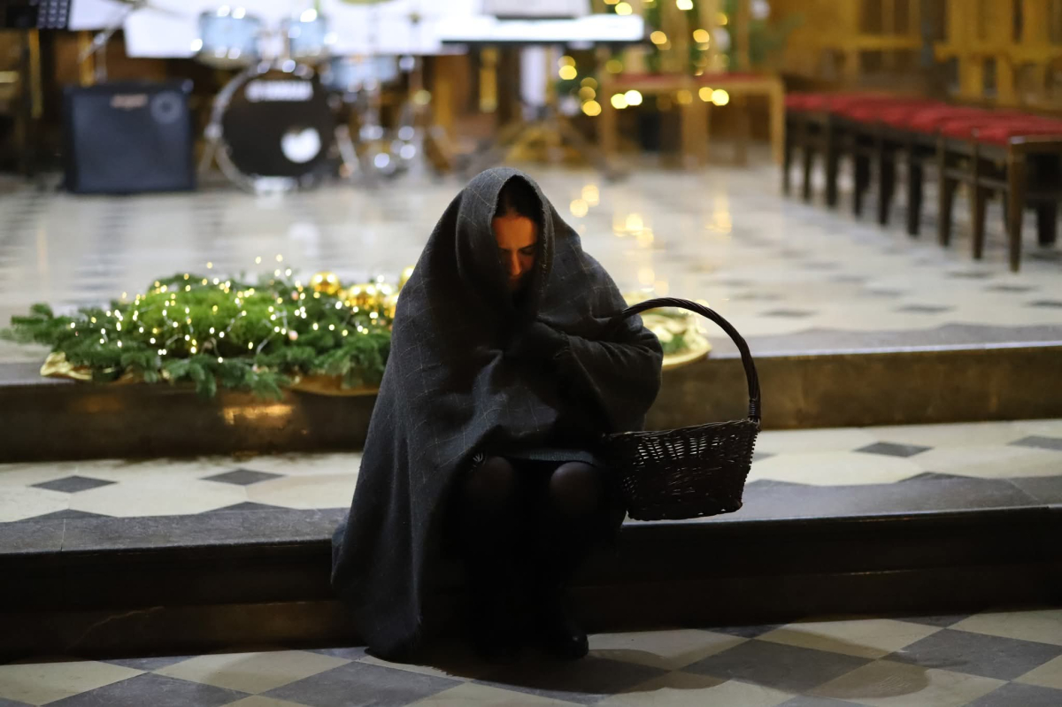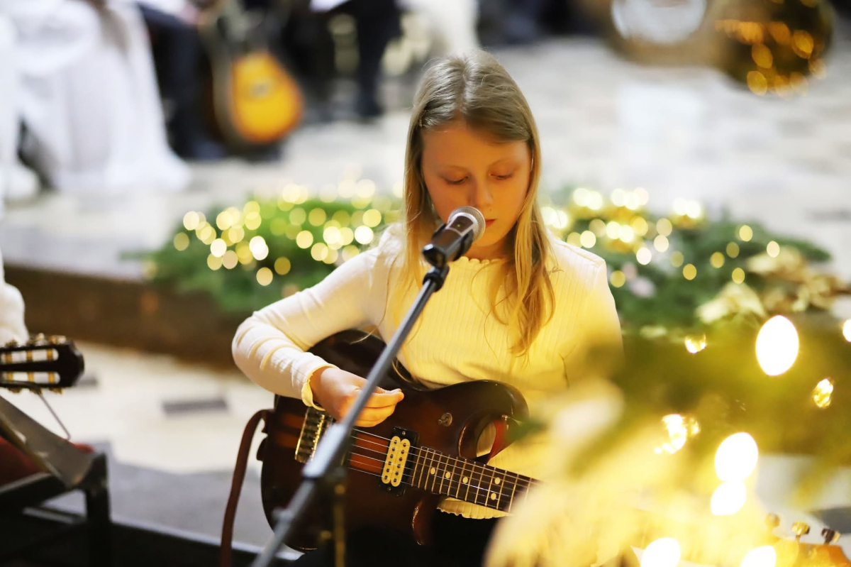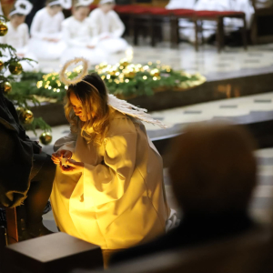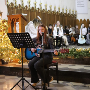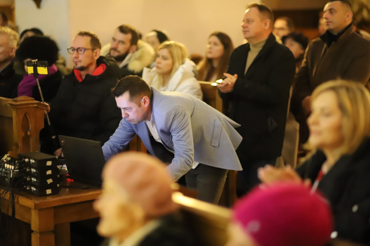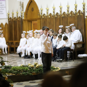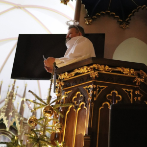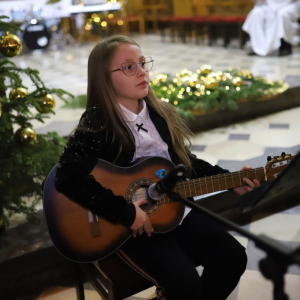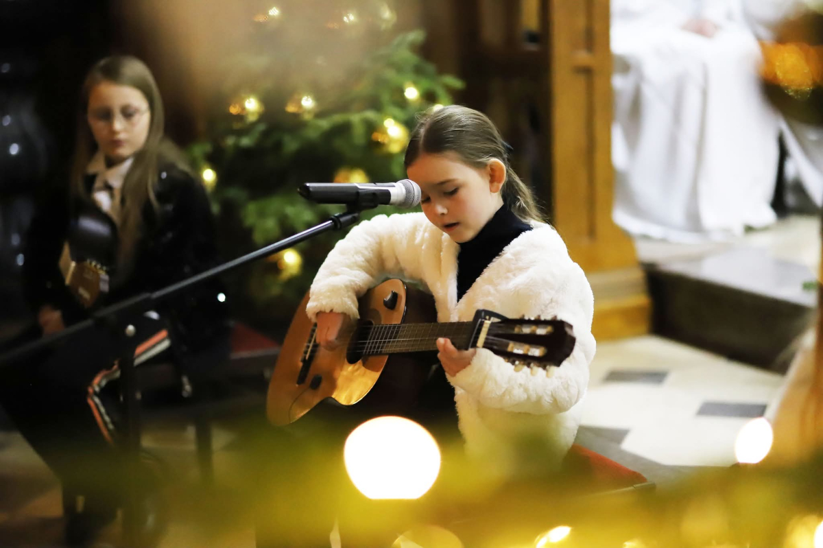 Panie Jezu, po raz czwarty przybyliśmy powitać Cię na świecie i śpiewać Twoją chwałę w kościele pw. Wniebowzięcia Najświętszej Marii Panny. Nieco spóźnieni i z lekką zadyszką (nawiązujemy do liryku ks. Kazimierza Wójtowicza), ale z przepełnionym radością sercem. Nie obyło się jednak bez komplikacji… Chodzi mianowicie o wielkie zamieszanie w niebie i na ziemi. Kiedy anielice szykowały wigilię, męska część nieba nie dopilnowała swoich obowiązków. Mała uboga dziewczynka z zapałkami marzła na mrozie. Znikąd nie było pomocy. Ludzie mijali ją obojętni. Co robić? Co robić? Martwiły się cherubiny. Jest remedium na ten kłopot! Tylko kolędy rozgrzeją ludzkie serca i skłonią ziemian do pomocy. Takie będzie rozwiązanie niebiańskiego kłopotu. Ale anioły przeliczyły swoje siły i potrzebowały natychmiastowej pomocy. To zadanie w sam raz dla nas! W sukurs przyszły i dzieci, i młodzież. Co nastąpiło potem? Próżno by opowiadać. Na własne oczy trzeba by to zobaczyć oraz usłyszeć. Dźwięczne śpiewne głosy, brzmienie gitar, mocne uderzenie zespołu muzycznego i anielskie pląsy rozgrzewały nieczułe ludzkie serca. Z pomocą pośpieszyli również dorośli: nasze Seniorki, zespół „Pacanowianie”, zespół „Singers QR” z Rytwian oraz rodzima „Oleśniczanka”. Było radośnie i dla ucha bardzo bardzo przyjemnie…