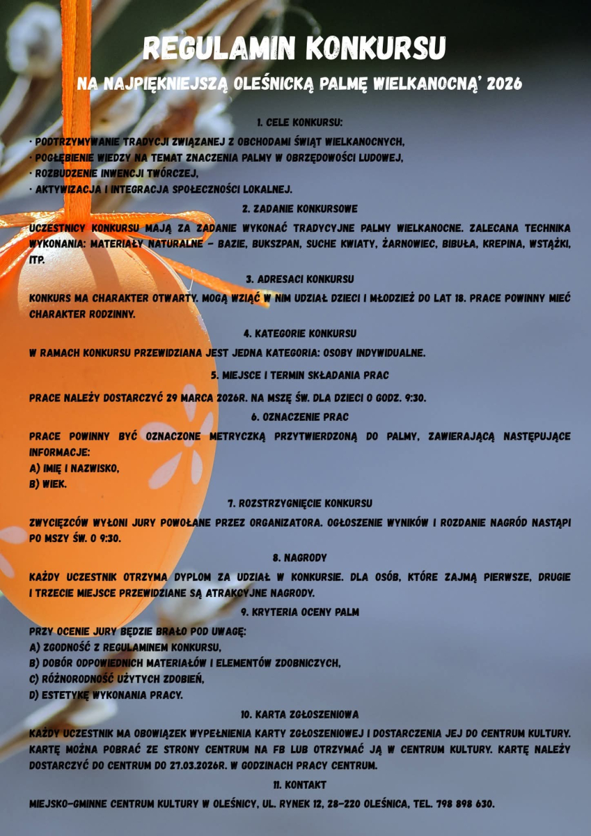 Konkurs na najpiękniejszą Oleśnicką Palmę Wielkanocną