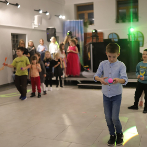 Ruszaj jak muzyczna rzeka! To kosmiczna dyskoteka! Odliczaliśmy sekundy do startu tej wspaniałej zabawy. W dyskotekowe rytmy i międzygalaktyczne zabawy co i rusz wplatały się nowe przestrzenie i światy, lądowały latające spodki, połyskiwały warkocze komety. Czy ta koleżanka przyleciała z Wenus? Pan zapewne jest z Marsa? Witam serdecznie! Wkrótce jednak na mlecznej drodze wybuchł międzyplanetarny konflikt – gwiezdne wojny. Wojownicy i wojowniczki, rycerze Jedi wkroczyli na wojenną ścieżkę - ratowali kosmos. Zwaśnione strony wkrótce się jednak pogodziły i we wszechświecie zapanował pokój. Takie historie możliwe są tylko z naszym Centrum.