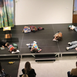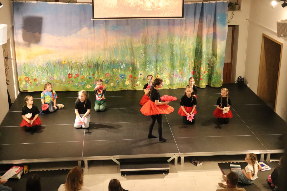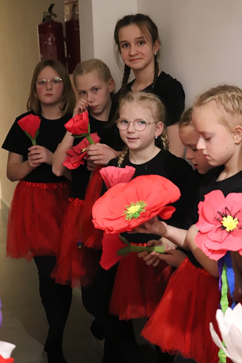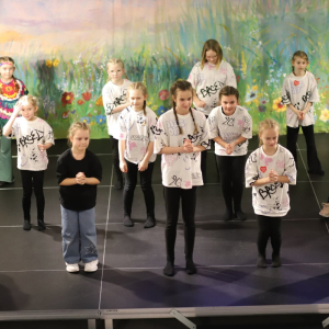 I poszło! Nasze pierwsze widowisko pt. „O tym, dlaczego dzieci z Oleśnicy baaardzo lubią czytać” już za nami. Było pięknie! Tym większą wartość dodaną ma nasze przedsięwzięcie, że scenariusz pisały dwie dziewczynki z piątej klasy, Iga i Kaja. W ciąg zdarzeń wplątani byli również ich przyjaciele. Zaczęło się niewinnie od przerwy w dostawie prądu i Internetu. A to ci ambaras! Co robić bez komórki i tabletu? Przerażające! Zaproponowana przez rodziców gra planszowa nie spełniła oczekiwań dziewczynek. Wraz z przyjaciółmi dziewczynki udały się do pobliskiej biblioteki, żeby wypożyczyć książki. Ale szybko znudziło je czytanie. A bo dana lektura nie ma obrazków, literki są za małe, a tomiska za opasłe. Kiedy dzieci znużone czytaniem zasnęły, pojawił się przewodnik po świecie fantazji. W krainach, do których zawędrowały dzieci nie było nudy. Był śpiew, taniec, gra na instrumentach, ale przede wszystkim spotkania z przyjaciółmi. Słowem emocjonująco i bardzo ciekawie! Dzieci wróciły do codzienności z nowo nabytą wiedzą i doświadczeniami oraz niezłomnym przekonaniem, że warto czytać.
